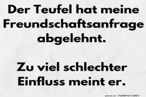 | Der Teufel hat abgelehnt Bild (59.5 KB) 5Lustiges → klasse Sprüche und Witze | Lustiges → klasse Sprüche und Witze | 04.06.-20:43 | Valentino | |