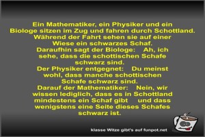 | Ein Mathematiker, ein Physiker und ein Biologe sitzen im... Bild (55.12 KB) 1Lustiges → klasse Sprüche und Witze | Lustiges → klasse Sprüche und Witze | 05.06.-18:37 | Fossy | |