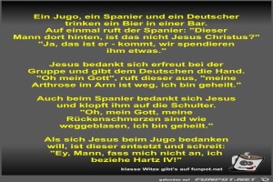 | Ein Jugo, ein Spanier und ein Deutscher trinken ein Bier in Bild (75.12 KB) 11Lustiges → klasse Sprüche und Witze | Lustiges → klasse Sprüche und Witze | 07.05.22-16:50 | Fossy | |