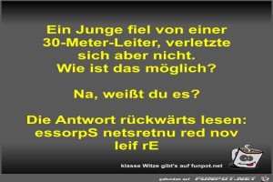 | Ein Junge fiel von einer 30-Meter-Leiter Bild (38.68 KB) 5Lustiges → klasse Sprüche und Witze | Lustiges → klasse Sprüche und Witze | 08.05.22-17:53 | Fossy | |