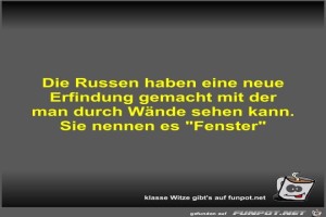 | Die Russen haben eine neue Erfindung gemacht mit der man... Bild (26.72 KB) 5Lustiges → klasse Sprüche und Witze | Lustiges → klasse Sprüche und Witze | 06.05.22-18:49 | Fossy | |