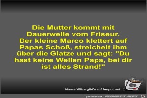 | Die Mutter kommt mit Dauerwelle vom Friseur Bild (38.68 KB) 3Lustiges → klasse Sprüche und Witze | Lustiges → klasse Sprüche und Witze | 06.05.22-11:21 | Fossy | |