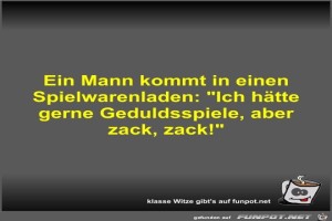 | Ein Mann kommt in einen Spielwarenladen Bild (27.36 KB) 3Lustiges → klasse Sprüche und Witze | Lustiges → klasse Sprüche und Witze | 29.04.22-14:23 | Fossy | |