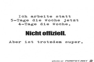 | Die selbst eingeführte 4-Tage-Woche Bild (29.33 KB) 6Lustiges → klasse Sprüche und Witze | Lustiges → klasse Sprüche und Witze | 02.05.22-08:26 | ||