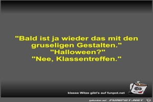 | Bald ist ja wieder das mit den gruseligen Gestalten Bild (24.8 KB) 9Lustiges → klasse Sprüche und Witze | Lustiges → klasse Sprüche und Witze | 29.04.22-19:55 | Fossy | |