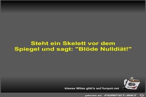 | Steht ein Skelett vor dem Spiegel und sagt Bild (18.6 KB) 5Lustiges → klasse Sprüche und Witze | Lustiges → klasse Sprüche und Witze | 30.04.22-14:33 | Fossy | |