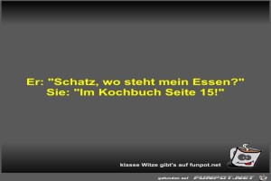 | Er: Schatz, wo steht mein Essen? Bild (17.59 KB) 5Lustiges → klasse Sprüche und Witze | Lustiges → klasse Sprüche und Witze | 12.04.22-10:50 | Fossy | |