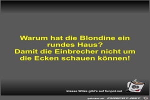 | Warum hat die Blondine ein rundes Haus? Bild (26.36 KB) 2Lustiges → klasse Sprüche und Witze | Lustiges → klasse Sprüche und Witze | 13.04.22-10:23 | Fossy | |