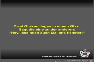 | Zwei Gurken liegen in einem Glas Bild (22.09 KB) 8Lustiges → klasse Sprüche und Witze | Lustiges → klasse Sprüche und Witze | 23.03.22-14:15 | Fossy | |
