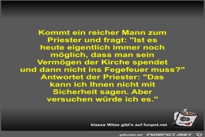| Kommt ein reicher Mann zum Priester und fragt Bild (43.06 KB) 6Lustiges → klasse Sprüche und Witze | Lustiges → klasse Sprüche und Witze | 21.03.22-17:23 | Fossy | |