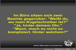 | Im Büro sitzen sich zwei Beamte gegenüber Bild (35.92 KB) 9Lustiges → klasse Sprüche und Witze | Lustiges → klasse Sprüche und Witze | 21.03.22-13:48 | Fossy | |
