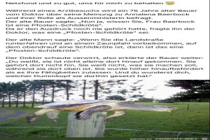 | Die Pfosten-Schildkröte Bild (207.65 KB) 16Lustiges → klasse Sprüche und Witze | Lustiges → klasse Sprüche und Witze | 24.02.22-07:44 | Tilo | |