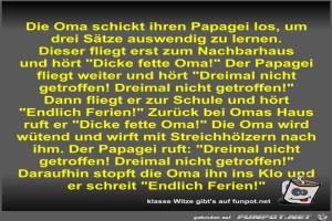| Die Oma schickt ihren Papagei los Bild (72.9 KB) 7Lustiges → klasse Sprüche und Witze | Lustiges → klasse Sprüche und Witze | 24.02.22-10:50 | Fossy | |