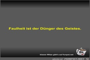 | Faulheit ist der Dünger des Geistes Bild (14.86 KB) 7Lustiges → klasse Sprüche und Witze | Lustiges → klasse Sprüche und Witze | 18.01.22-08:20 | Fossy | |