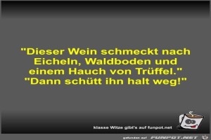 | Dieser Wein schmeckt nach Eicheln Bild (28.76 KB) 6Lustiges → klasse Sprüche und Witze | Lustiges → klasse Sprüche und Witze | 18.01.22-17:33 | Fossy | |
