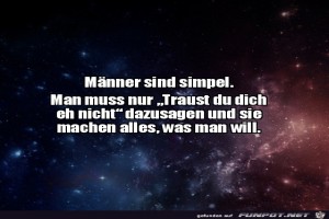 | Männer sind simpel Bild (69.26 KB) 14Lustiges → klasse Sprüche und Witze | Lustiges → klasse Sprüche und Witze | 11.01.22-08:52 | ||
