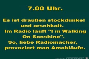 | 7.00 Uhr Bild (41.66 KB) 6Lustiges → klasse Sprüche und Witze | Lustiges → klasse Sprüche und Witze | 13.01.22-07:21 | Keule56 | |
