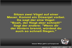 | Sitzen zwei Vögel auf einer Mauer Bild (37.23 KB) 5Lustiges → klasse Sprüche und Witze | Lustiges → klasse Sprüche und Witze | 10.01.22-10:50 | Fossy | |