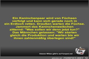 | Ein Kaninchenpaar wird von Füchsen verfolgt und kann sich... Bild (42.04 KB) 6Lustiges → klasse Sprüche und Witze | Lustiges → klasse Sprüche und Witze | 09.01.22-08:01 | Fossy | |