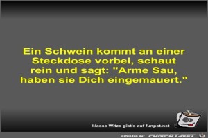 | Ein Schwein kommt an einer Steckdose vorbei Bild (28.17 KB) 8Lustiges → klasse Sprüche und Witze | Lustiges → klasse Sprüche und Witze | 10.01.22-08:01 | Fossy | |