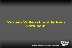 | Wo ein Wille ist, sollte kein Sofa sein Bild (16.81 KB) 1Lustiges → klasse Sprüche und Witze | Lustiges → klasse Sprüche und Witze | 22.05.-14:00 | Fossy | |