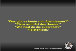 | Was gibt es heute zum Abendessen? Bild (22.94 KB) 2Lustiges → klasse Sprüche und Witze | Lustiges → klasse Sprüche und Witze | 22.05.-10:56 | Fossy | |