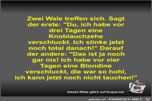 | Zwei Wale treffen sich Bild (47.07 KB) 5Lustiges → klasse Sprüche und Witze | Lustiges → klasse Sprüche und Witze | 25.12.21-14:37 | Fossy | |