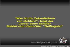 | Was ist die Zukunftsform von stehlen? Bild (24.03 KB) 6Lustiges → klasse Sprüche und Witze | Lustiges → klasse Sprüche und Witze | 13.01.22-08:00 | Fossy | |