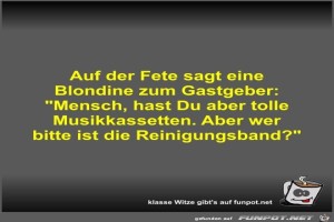 | Auf der Fete sagt eine Blondine zum Gastgeber Bild (32.23 KB) 9Lustiges → klasse Sprüche und Witze | Lustiges → klasse Sprüche und Witze | 25.12.21-08:16 | Fossy | |