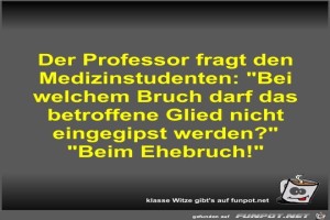 | Der Professor fragt den Medizinstudenten Bild (39.96 KB) 7Lustiges → klasse Sprüche und Witze | Lustiges → klasse Sprüche und Witze | 23.12.21-08:06 | Fossy | |