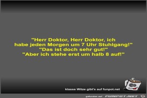 | Herr Doktor, Herr Doktor, ich habe jeden Morgen um 7 Uhr... Bild (22.97 KB) 6Lustiges → klasse Sprüche und Witze | Lustiges → klasse Sprüche und Witze | 17.12.21-11:06 | Fossy | |