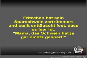 | Fritzchen hat sein Sparschwein zertrümmert und stellt... Bild (31.67 KB) 6Lustiges → klasse Sprüche und Witze | Lustiges → klasse Sprüche und Witze | 16.12.21-11:20 | Fossy | |