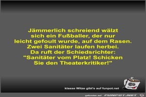 | Jämmerlich schreiend wälzt sich ein Fußballer Bild (36.12 KB) 6Lustiges → klasse Sprüche und Witze | Lustiges → klasse Sprüche und Witze | 16.12.21-14:13 | Fossy | |