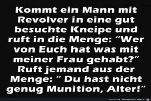 | Nicht genug Munition Bild (85.89 KB) 4Lustiges → klasse Sprüche und Witze | Lustiges → klasse Sprüche und Witze | 11.12.21-07:26 | ||