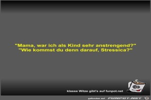 | Mama, war ich als Kind sehr anstrengend? Bild (18.05 KB) 10Lustiges → klasse Sprüche und Witze | Lustiges → klasse Sprüche und Witze | 12.12.21-08:10 | Fossy | |
