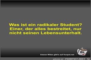 | Was ist ein radikaler Student? Bild (24.09 KB) 7Lustiges → klasse Sprüche und Witze | Lustiges → klasse Sprüche und Witze | 11.12.21-08:00 | Fossy | |