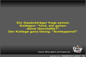 | Ein Gepäckträger fragt seinen Kollegen Bild (23.33 KB) 6Lustiges → klasse Sprüche und Witze | Lustiges → klasse Sprüche und Witze | 30.11.21-11:11 | Fossy | |