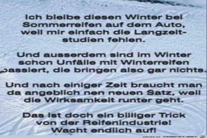 | Ich bleib bei Sommerreifen Bild (146.18 KB) 10Lustiges → klasse Sprüche und Witze | Lustiges → klasse Sprüche und Witze | 28.11.21-09:50 | ||
