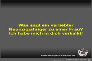 | Was sagt ein verliebter Neunzigjähriger zu einer Frau? Bild (23.67 KB) 12Lustiges → klasse Sprüche und Witze | Lustiges → klasse Sprüche und Witze | 29.11.21-08:09 | Fossy | |