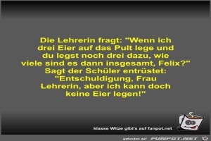 | Die Lehrerin fragt Bild (37.47 KB) 6Lustiges → klasse Sprüche und Witze | Lustiges → klasse Sprüche und Witze | 23.11.21-11:15 | Fossy | |