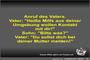 | Anruf des Vaters Bild (35.38 KB) 5Lustiges → klasse Sprüche und Witze | Lustiges → klasse Sprüche und Witze | 24.11.21-11:10 | Fossy | |