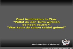 | Zwei Architekten in Pisa Bild (23.7 KB) 7Lustiges → klasse Sprüche und Witze | Lustiges → klasse Sprüche und Witze | 24.11.21-14:15 | Fossy | |