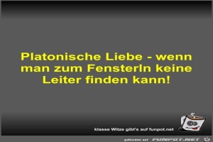 | Platonische Liebe - wenn man zum Fensterln keine Leiter... Bild (24.07 KB) 5Lustiges → klasse Sprüche und Witze | Lustiges → klasse Sprüche und Witze | 15.11.21-08:00 | Fossy | |