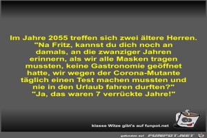 | Im Jahre 2055 treffen sich zwei ältere Herren Bild (46.02 KB) 8Lustiges → klasse Sprüche und Witze | Lustiges → klasse Sprüche und Witze | 12.11.21-11:04 | Fossy | |