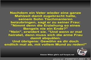 | Nachdem ein Vater wieder eine ganze Mahlzeit damit... Bild (51.35 KB) 9Lustiges → klasse Sprüche und Witze | Lustiges → klasse Sprüche und Witze | 11.11.21-14:21 | Fossy | |