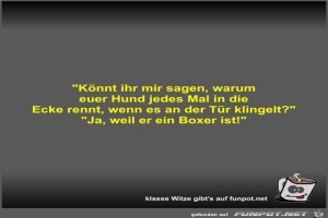 | Könnt ihr mir sagen, warum euer Hund jedes Mal in die Ecke Bild (22.25 KB) 6Lustiges → klasse Sprüche und Witze | Lustiges → klasse Sprüche und Witze | 14.11.21-08:14 | Fossy | |