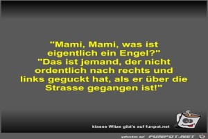 | Mami, Mami, was ist eigentlich ein Engel? Bild (33.96 KB) 8Lustiges → klasse Sprüche und Witze | Lustiges → klasse Sprüche und Witze | 06.11.21-14:16 | Fossy | |
