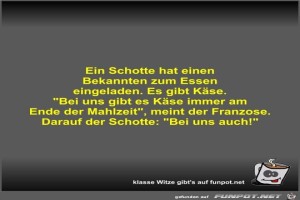 | Ein Schotte hat einen Bekannten zum Essen eingeladen Bild (30.17 KB) 7Lustiges → klasse Sprüche und Witze | Lustiges → klasse Sprüche und Witze | 08.11.21-08:13 | Fossy | |