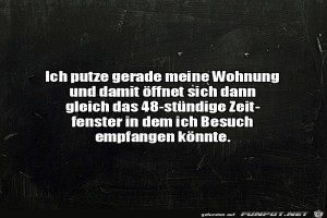| Die Wohnung wird geputzt Bild (80.2 KB) 8Lustiges → klasse Sprüche und Witze | Lustiges → klasse Sprüche und Witze | 07.11.21-09:17 | ||