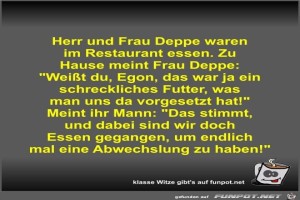 | Herr und Frau Deppe waren im Restaurant essen Bild (48.53 KB) 8Lustiges → klasse Sprüche und Witze | Lustiges → klasse Sprüche und Witze | 08.11.21-11:06 | Fossy | |